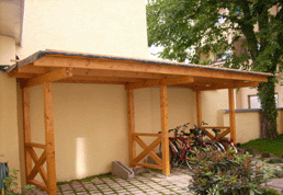 | Fahrradunterstand mit Blechdach für einen Münchner Hof |