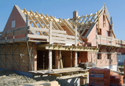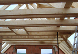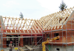 | Einfamilienhaus: Dachstühle mit eingeschifteten Garagendächern |