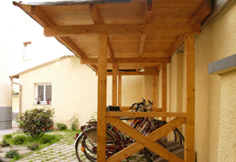 | Fahrradunterstand mit Blechdach für einen Münchner Hof |