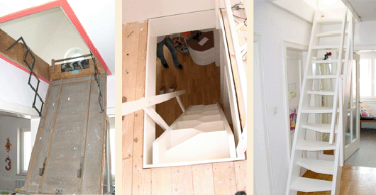 | Ausbau einer Einschubtreppe und Einbau einer Raumspartreppe |